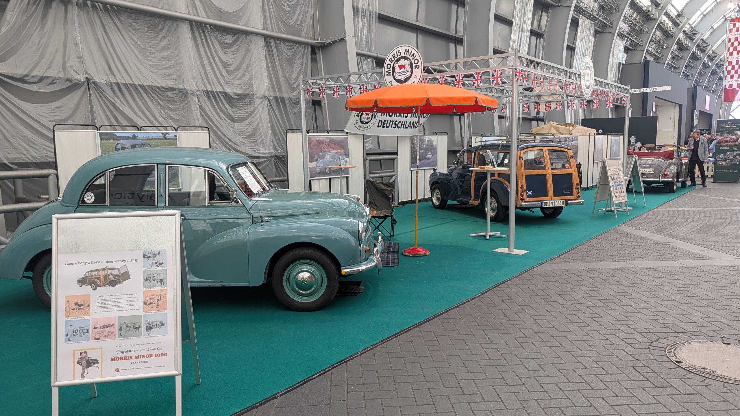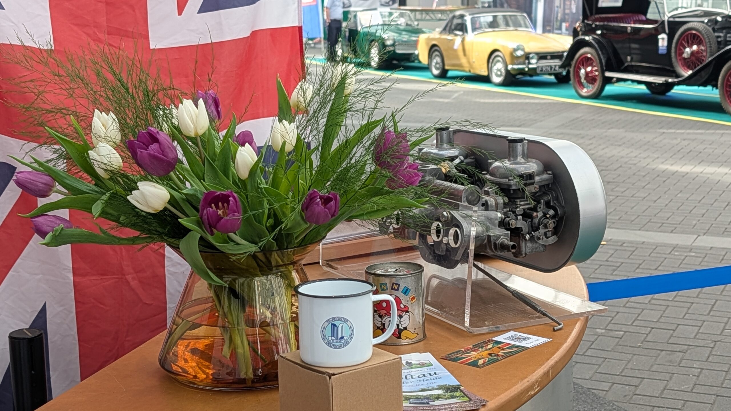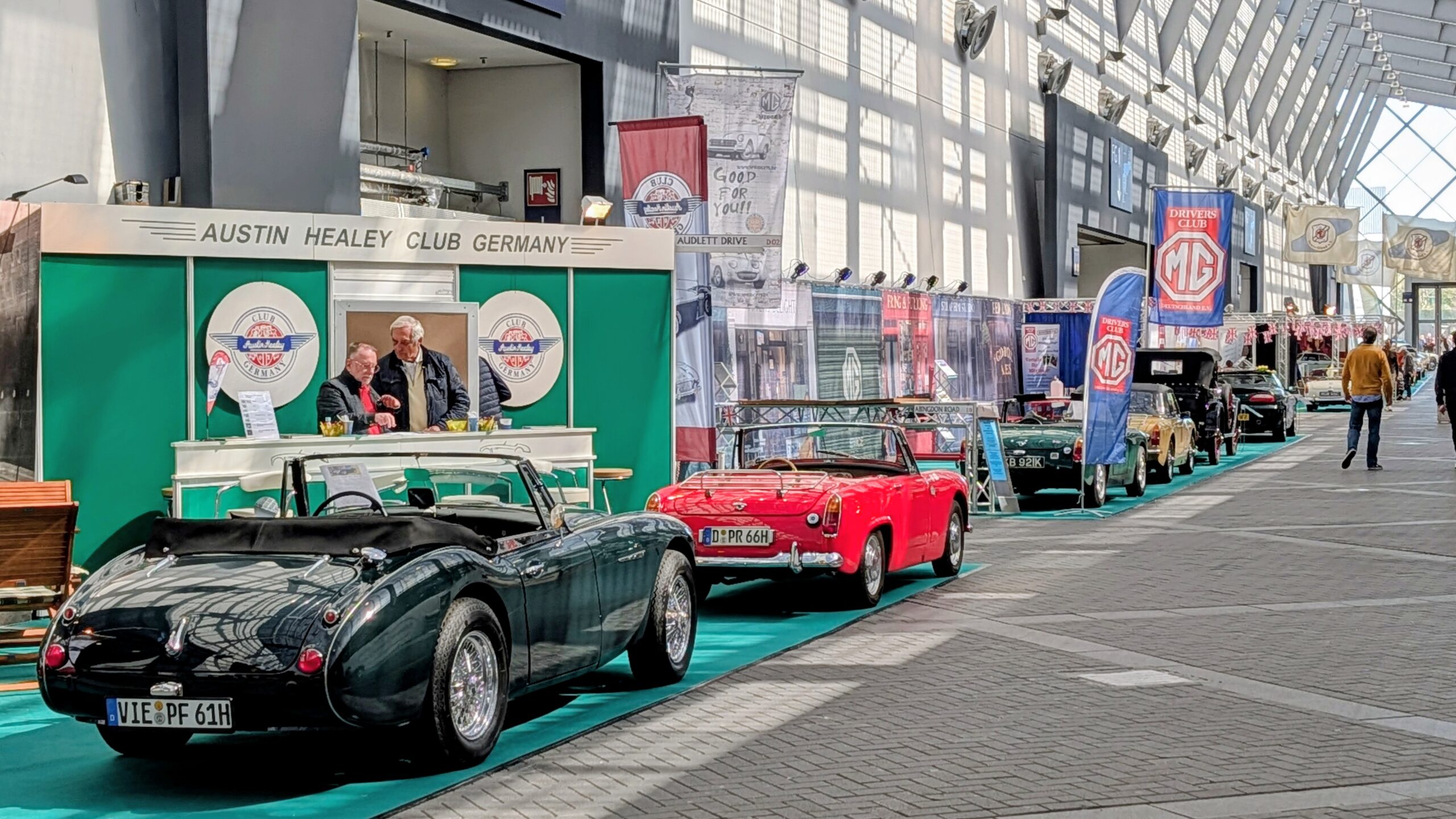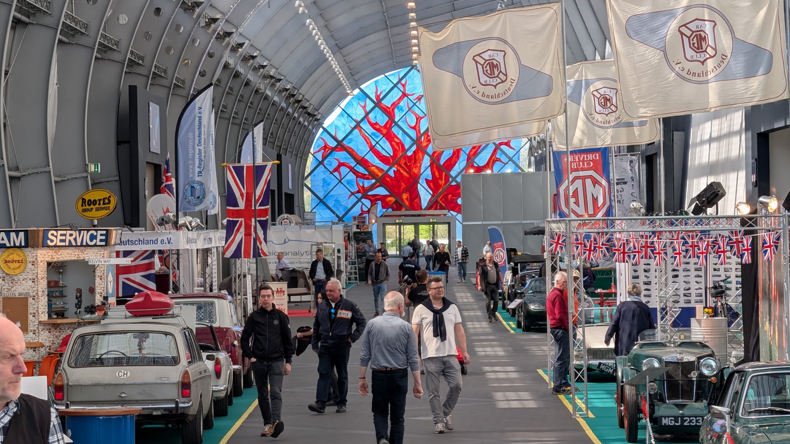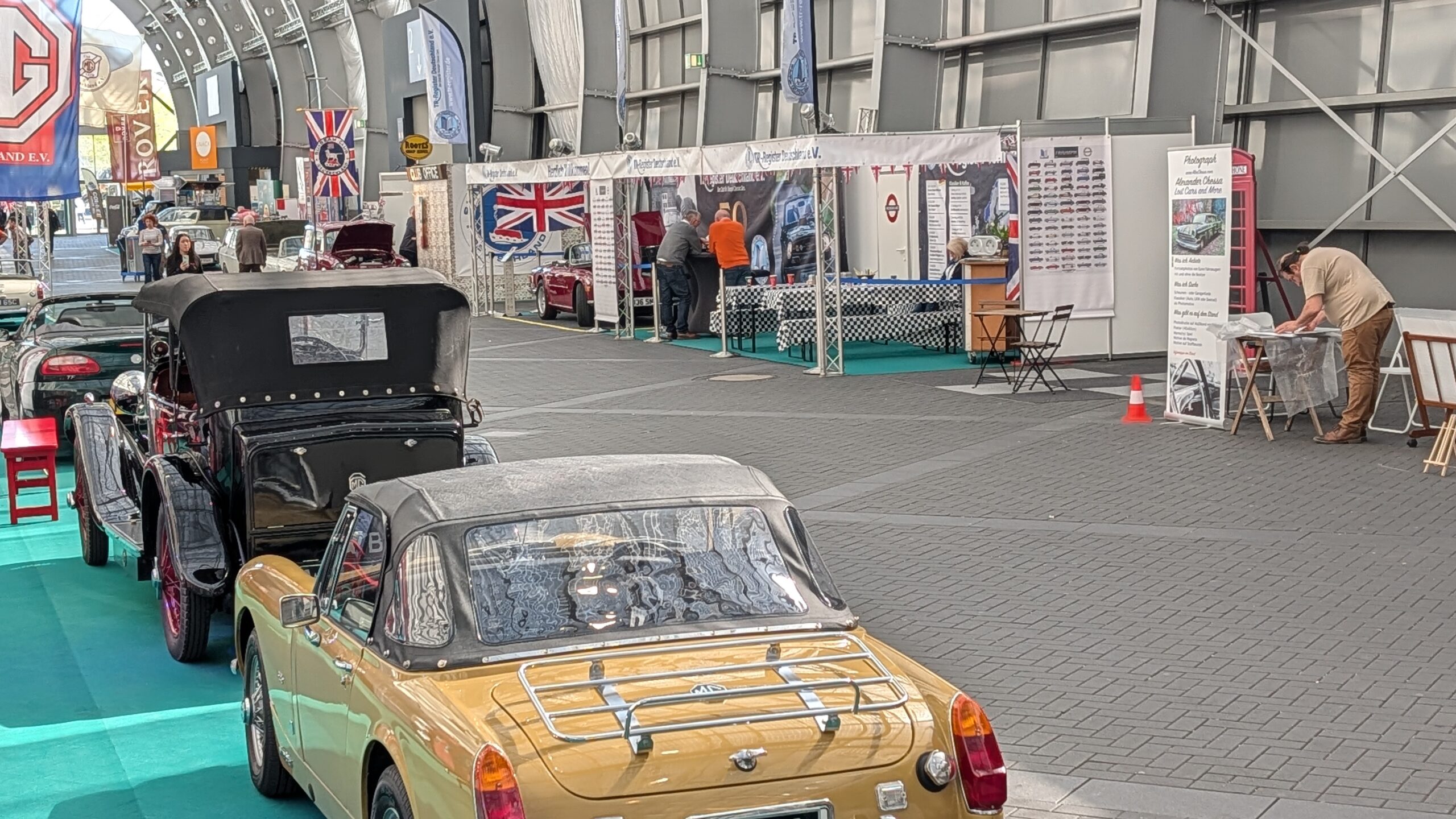 Auf der „British Lane“ verschwammen die Grenzen zwischen den einzelnen Marken: Das Triumph Register Ruhrgebiet präsentierte sich Seite an Seite mit Insel-Klassikern wie Triumph Stag, MG, Austin Healey, Morris Minor, Sunbeam und Rover. Das Konzept ging auf – statt starrer Trennwände herrschte eine offene Atmosphäre, die eher an einen gemütlichen Straßenzug in England erinnerte als an eine klassische Oldtimershow. Und wenn jeden Tag zu Beginn und Ende der Messetage die englische Nationalhymne beim MG Stand abgespielt wurde war der „Spirit of British Lane“ besonders zu spüren.